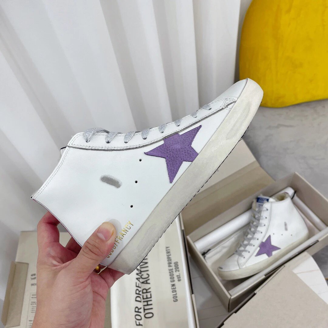 Home / Shoes/ Golden Goose White Purple Star High Top Sneakers