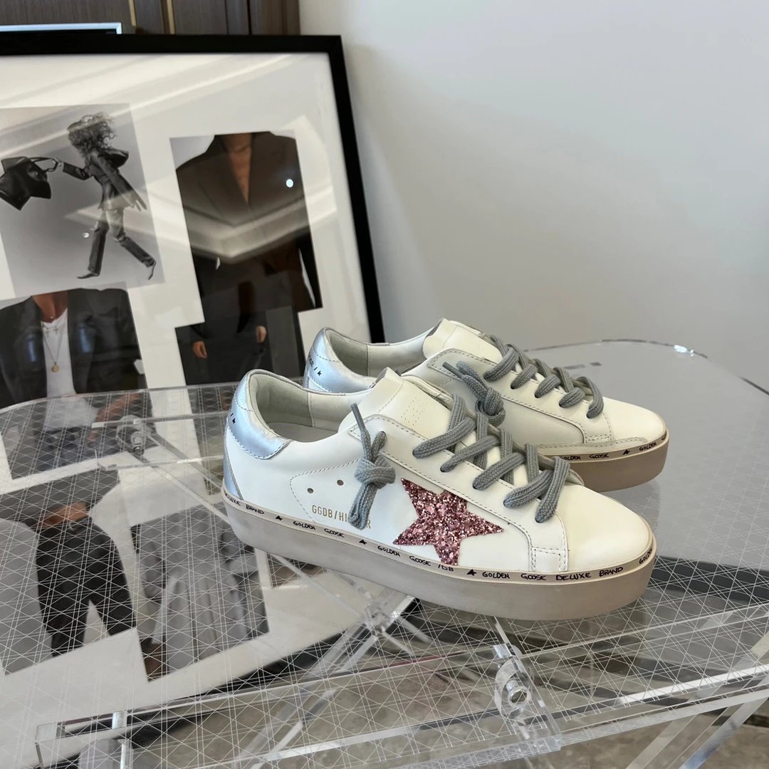 Golden Goose White Sneakers Pink Glitter Star