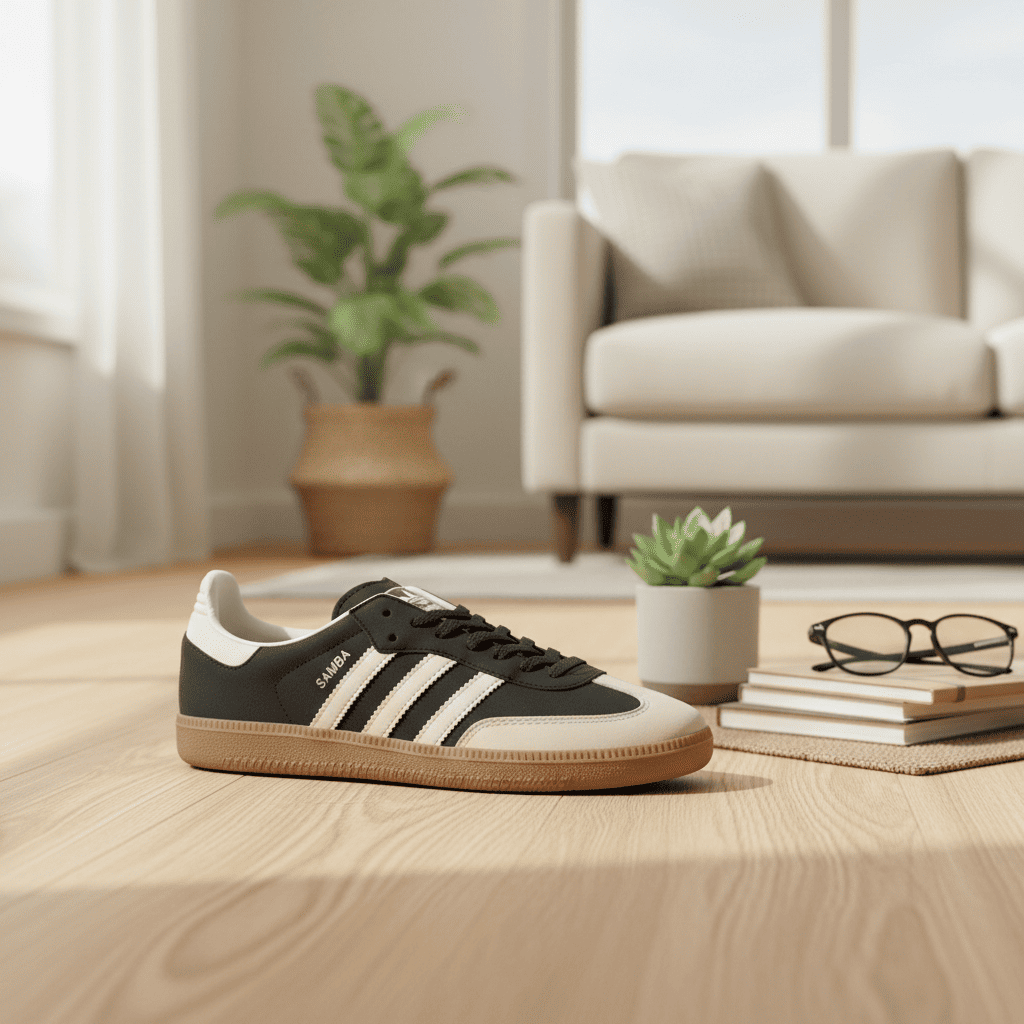 Adidas Samba Black White Retro Sneakers for Men and Women, featuring classic 3-Stripes design, premium leather and suede upper, durable gum sole, combining vintage soccer style with modern street fashion.