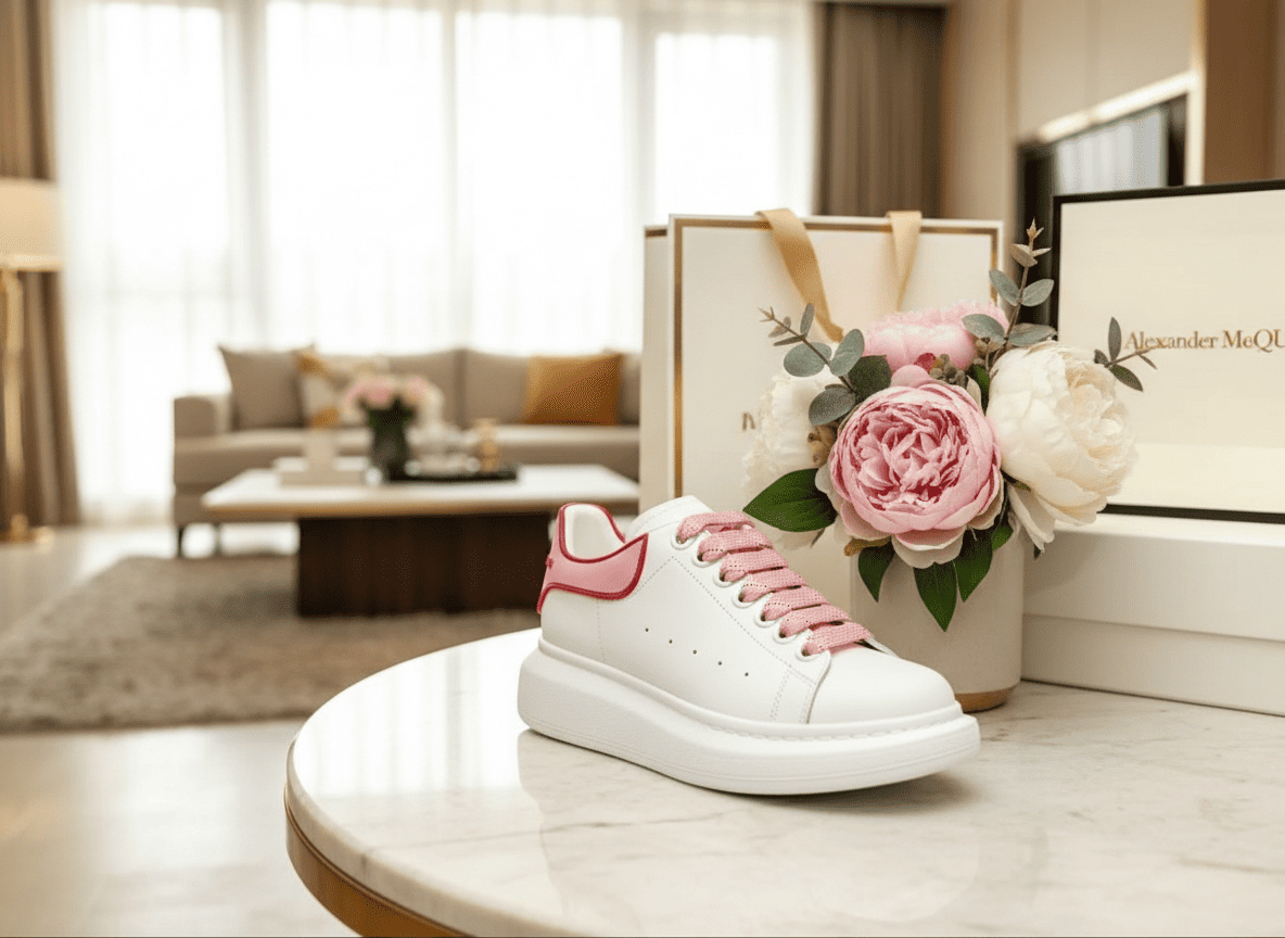Alexander McQueen Pink Trim White Sneakers
