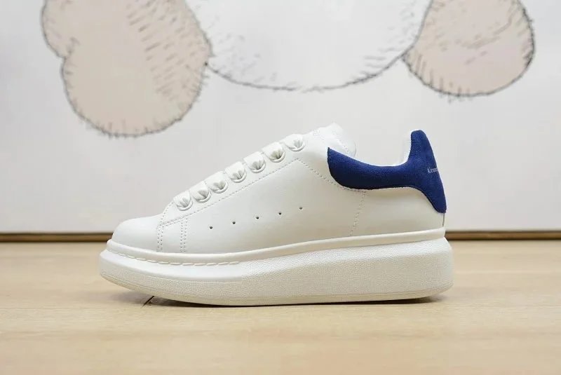Alexander Wang white and blue chunky sneakers made from premium leather, soft and smooth touch, minimalist design with bold blue heel logo, comfortable thick sole, unisex urban style for daily wear.