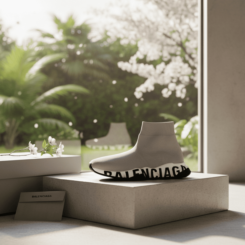 Balenciaga Speed Trainer Beige Knit Shoes