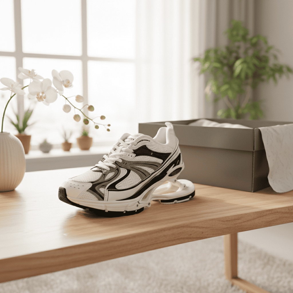 Balenciaga Track Spander Black White Sneakers blend mesh and leather for a layered tech look. Split sole ensures comfort and support. Unisex style fits everyday streetwear and futuristic fashion.