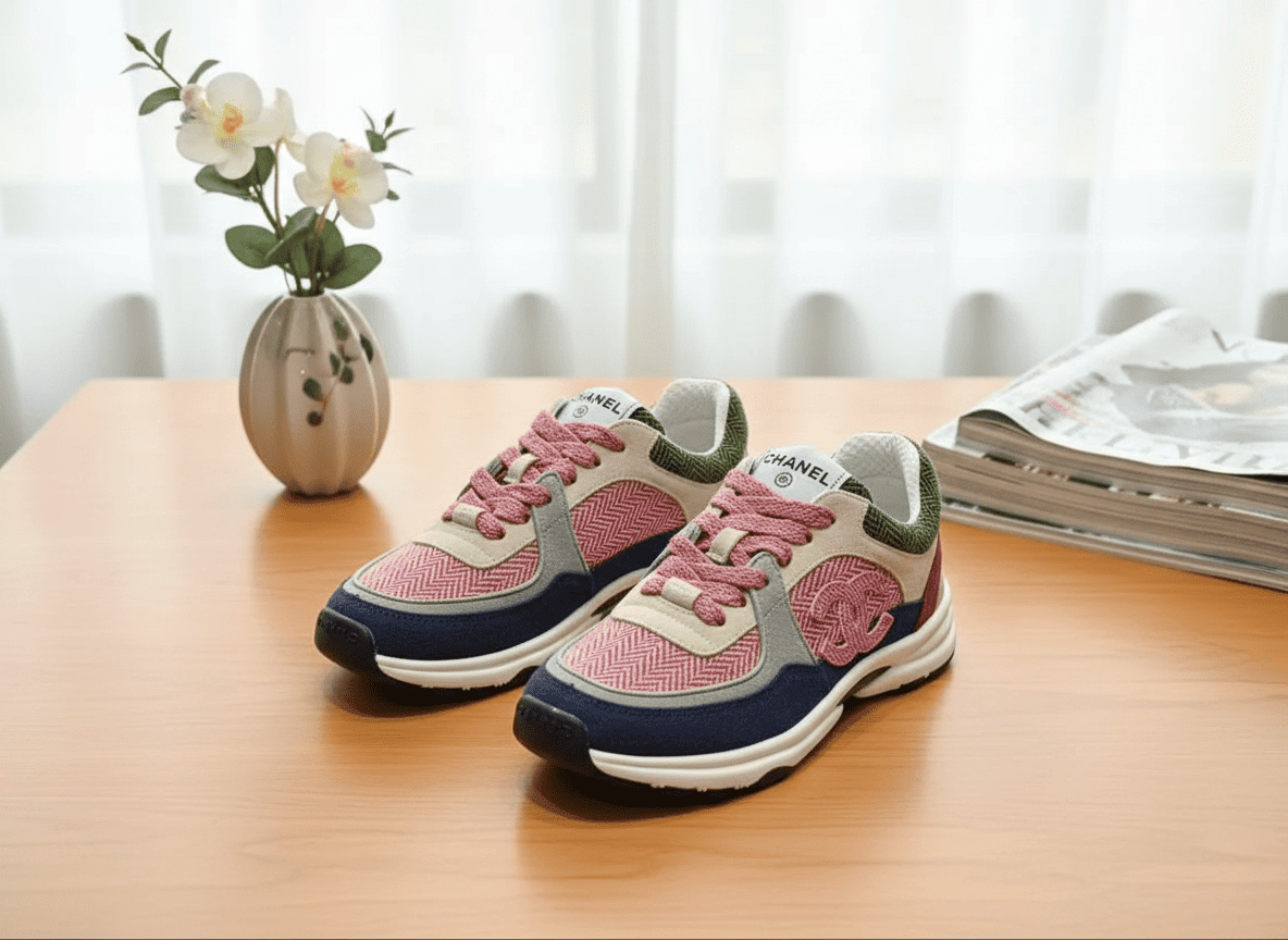 Chanel Black White Leather Casual Sneakers