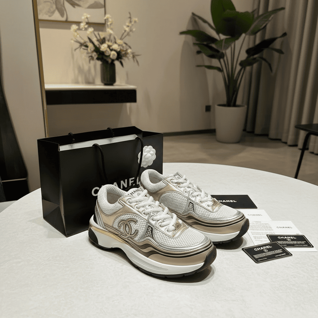Chanel Pink Silver Mesh Women’s Sneakers