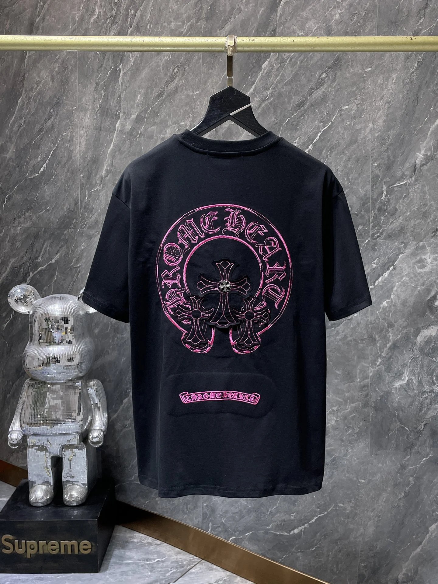 Chrome Hearts Pink Graphic Black Cotton T-Shirt