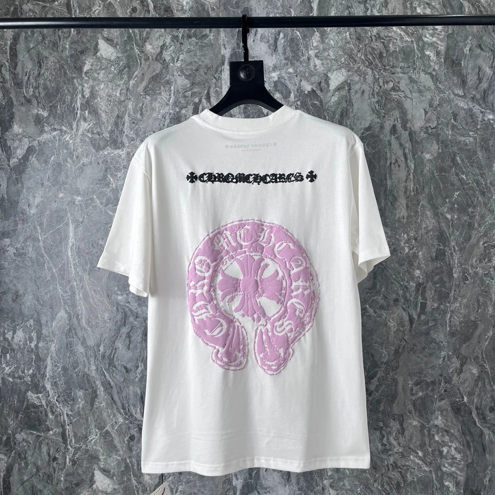 Chrome Hearts Pink Graphic Black Cotton T-Shirt