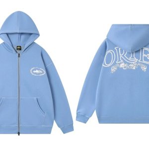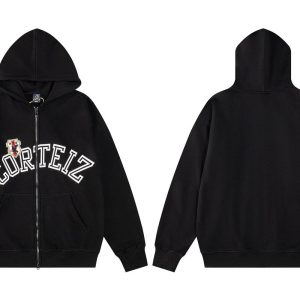 Corteiz Grey Zip Up Hoodie Men Women Casual