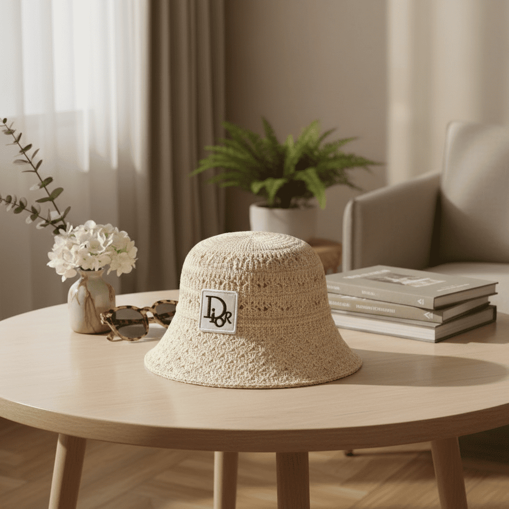 Home / Hats/Hatswear/ Dior Crochet Bucket Hat Summer Beige