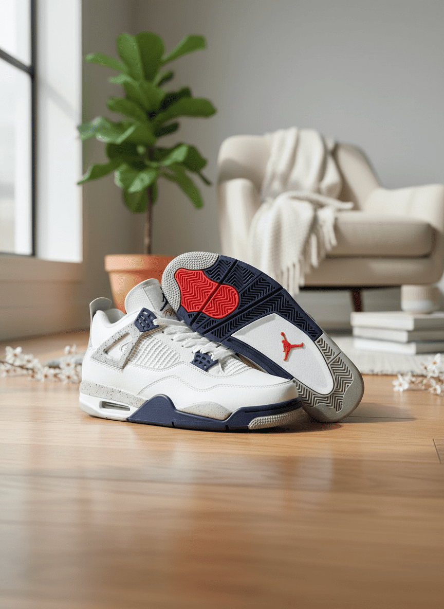 Jordan Retro Basketball Shoes in classic white, blue, and gray. Premium leather and mesh design with dynamic Air cushioning and red Jumpman details. Unisex casual sneakers for street sport style.