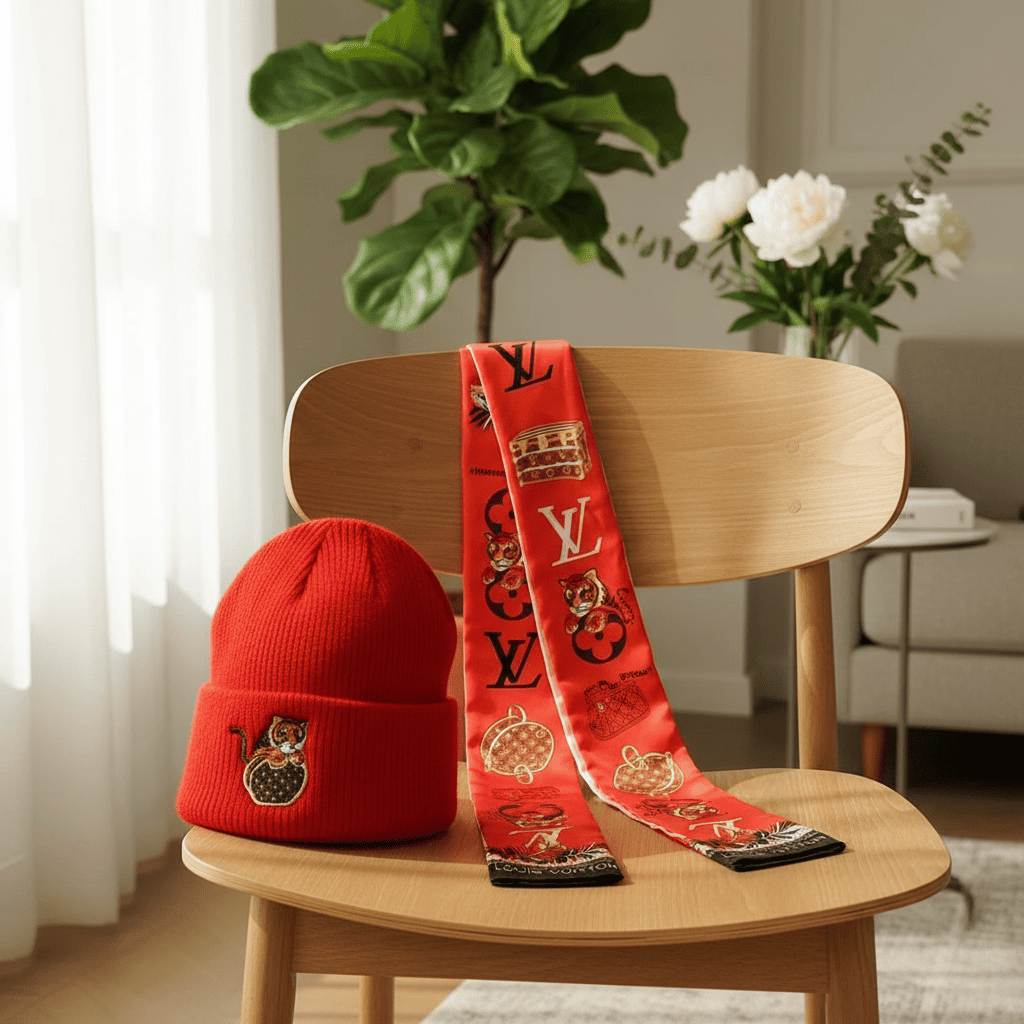 Home / Hats/Hatswear/ Louis Vuitton Red Knit Hat Scarf Set