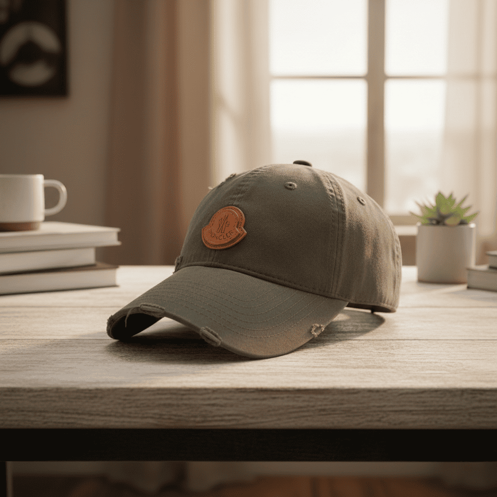Moncler Beige Distressed Cotton Baseball Cap