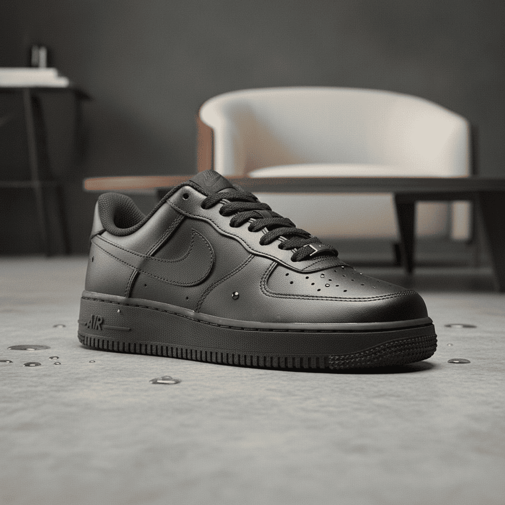 Nike Air Force 1 Low All Black Leather Sneakers feature classic Air cushioning, unisex design, sleek minimalist look, and streetwear-inspired versatility for everyday casual style.