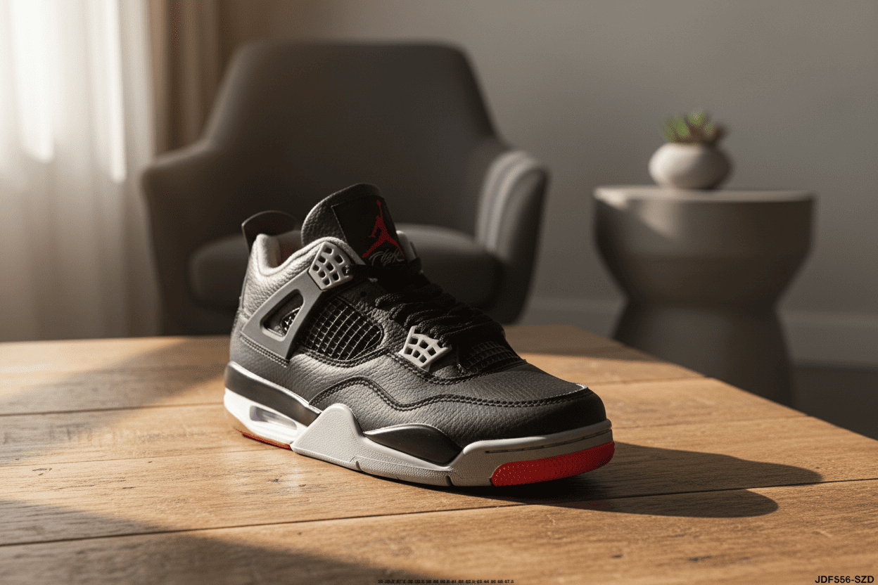 Nike Air Jordan 4 Retro Black Red sneakers feature premium tumbled leather, Air cushioning midsole, and breathable mesh panels for a classic 90s street-inspired look, perfect for men and women.