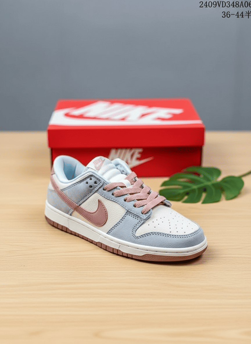 Nike Light Grey Pink Low-Top Sneakers combine premium suede and leather for soft breathability. Retro street style with pink laces, durable rubber sole, unisex design for casual fashion and urban youthful energy.