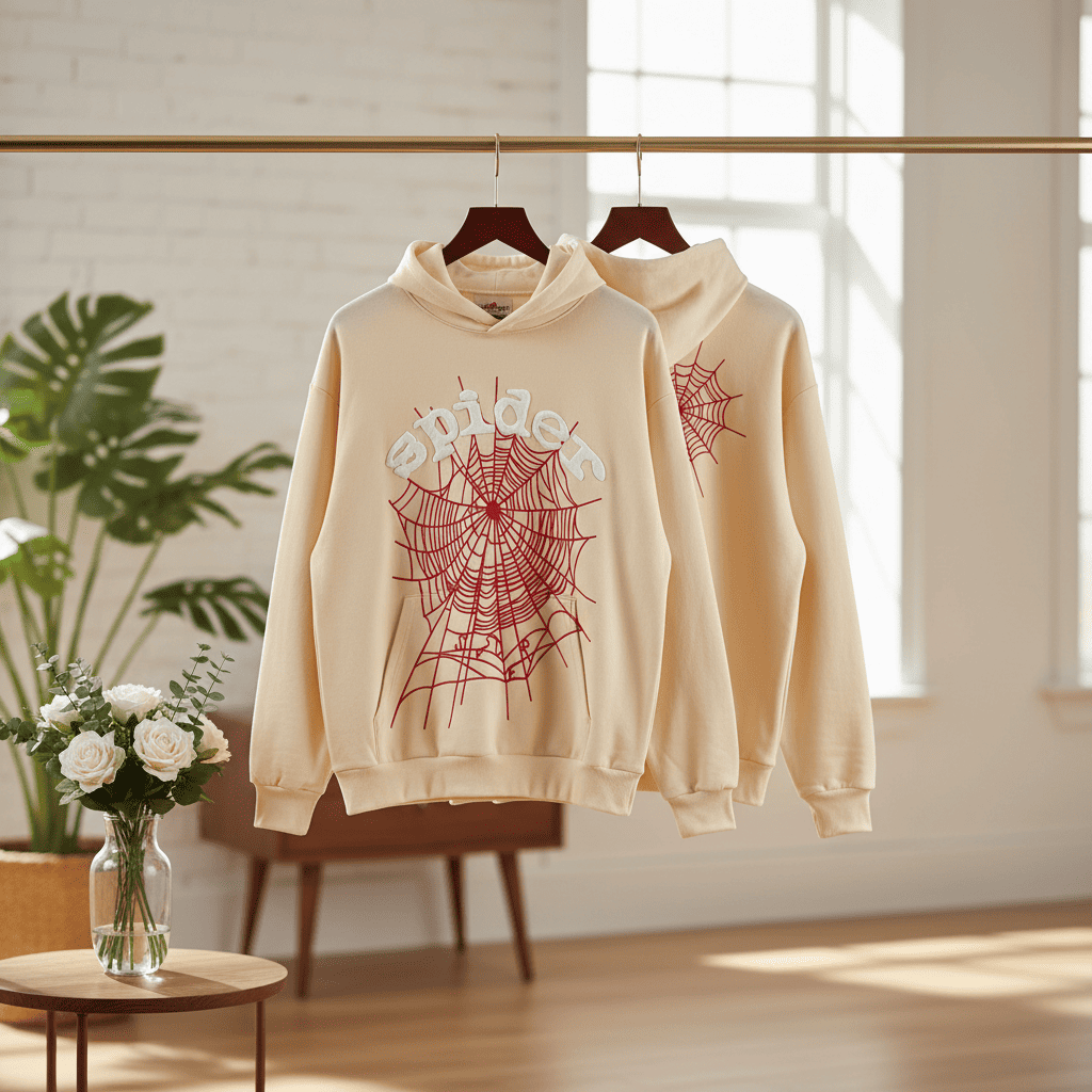 Sp5der Black Orange Star Graphic Streetwear Hoodie
