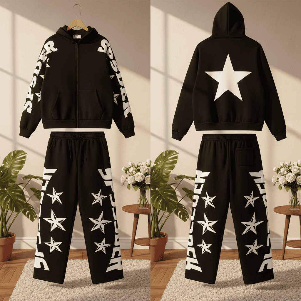 Sp5der Atlanta Star Print Navy Hoodie Pullover