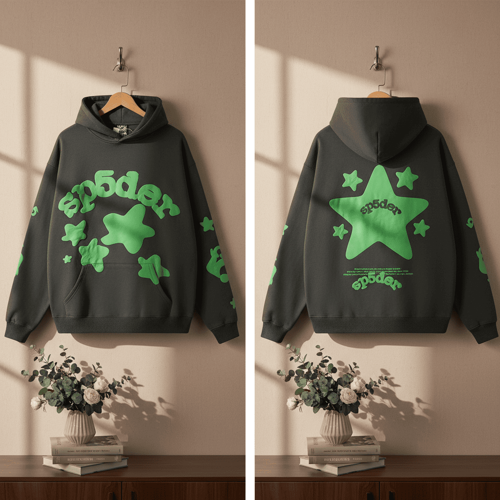 Sp5der Brown Star Pattern Hoodie Pullover