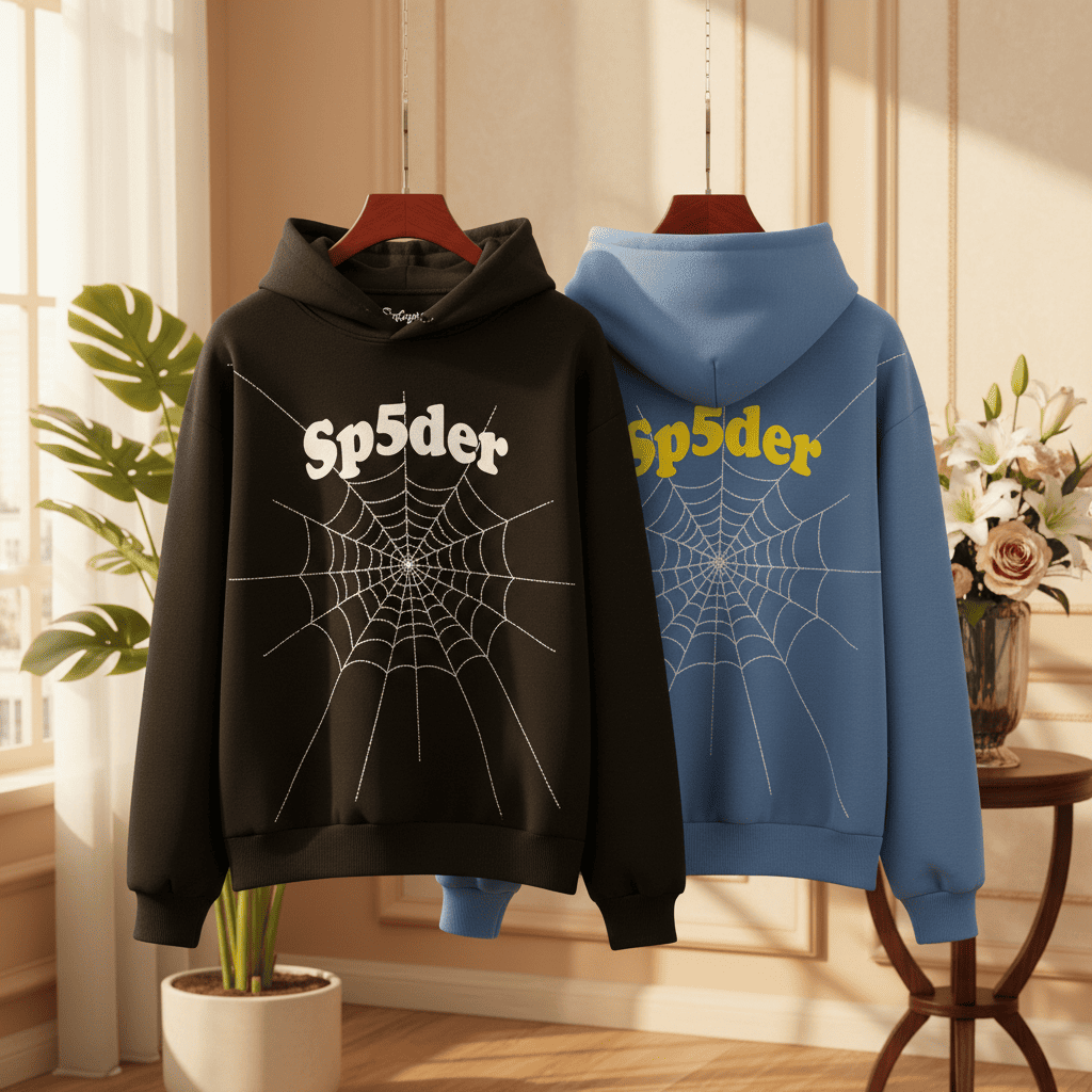 Sp5der Black Yellow Star Graphic Streetwear Hoodie