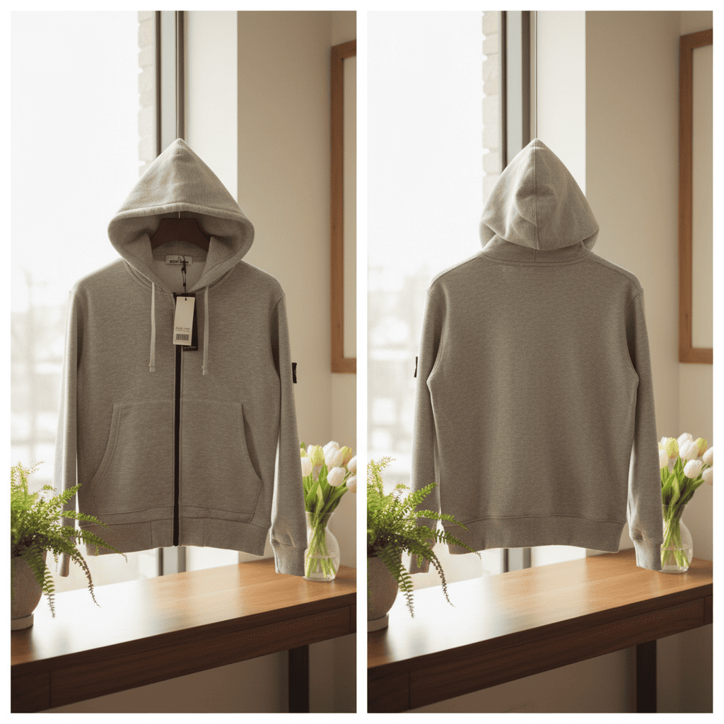 Stone Island White Zip Up Hoodie