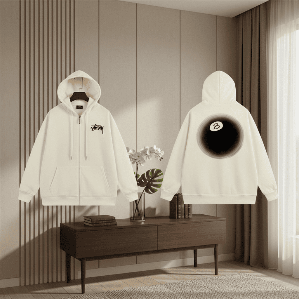 Stussy Gray Zip Up Hoodie Streetwear Pullover Jacket