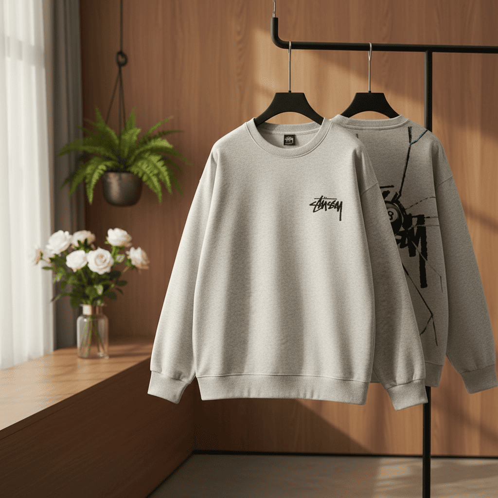 Stussy Graphic Print Grey Zip Up Hoodie