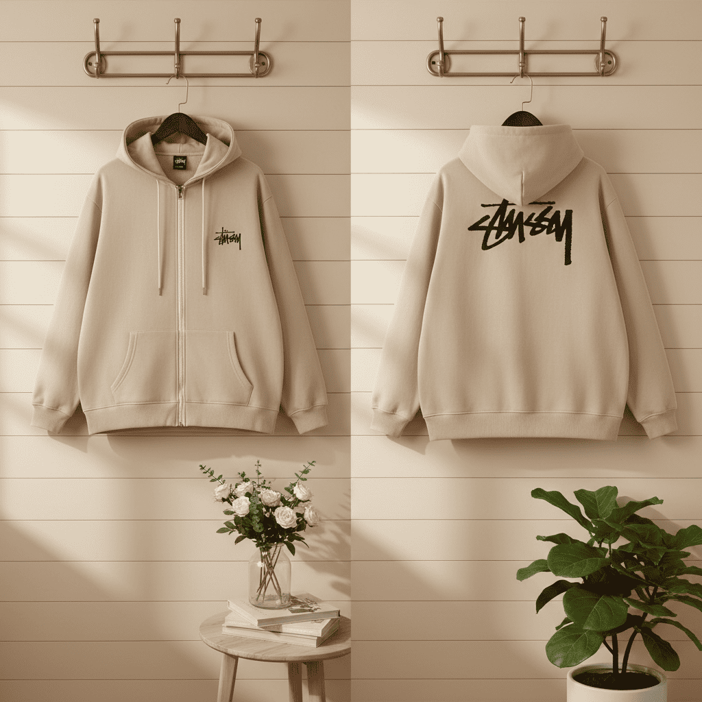 Home / Hoodies/ Stussy Beige Zip Up Hoodie for Men