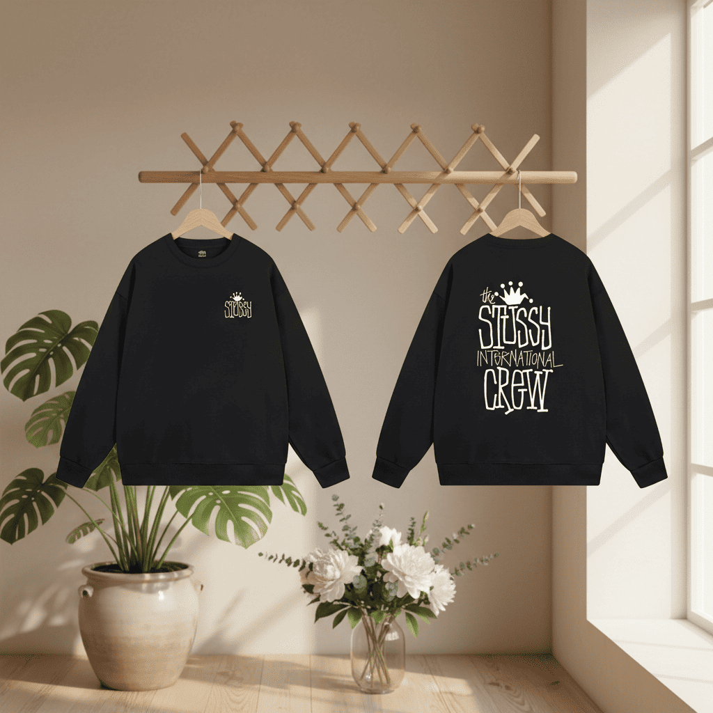 Stussy No4 Logo Graphic Black Cotton T-Shirt
