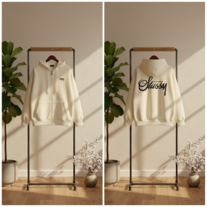 Stussy Logo Zip Up Hoodie Navy Sweatshirt