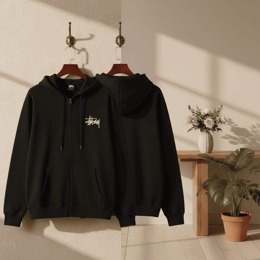 Stussy Black Polo Shirt Men Casual Streetwear