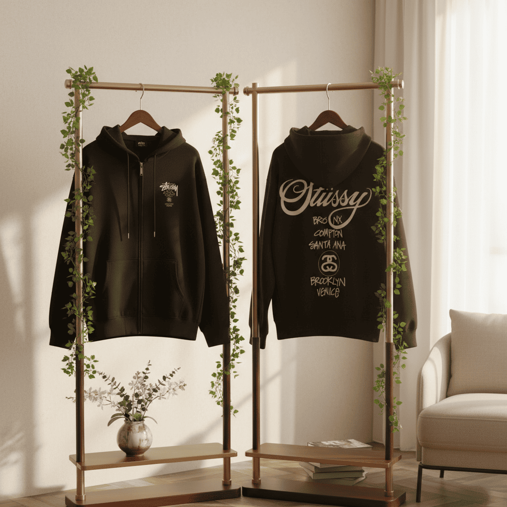 Stussy Logo Zip Up Hoodie Navy Sweatshirt