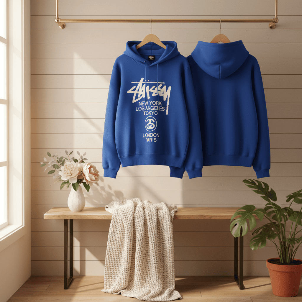 Home / Hoodies/ Stussy Blue Graphic Hoodie Streetwear Pullover
