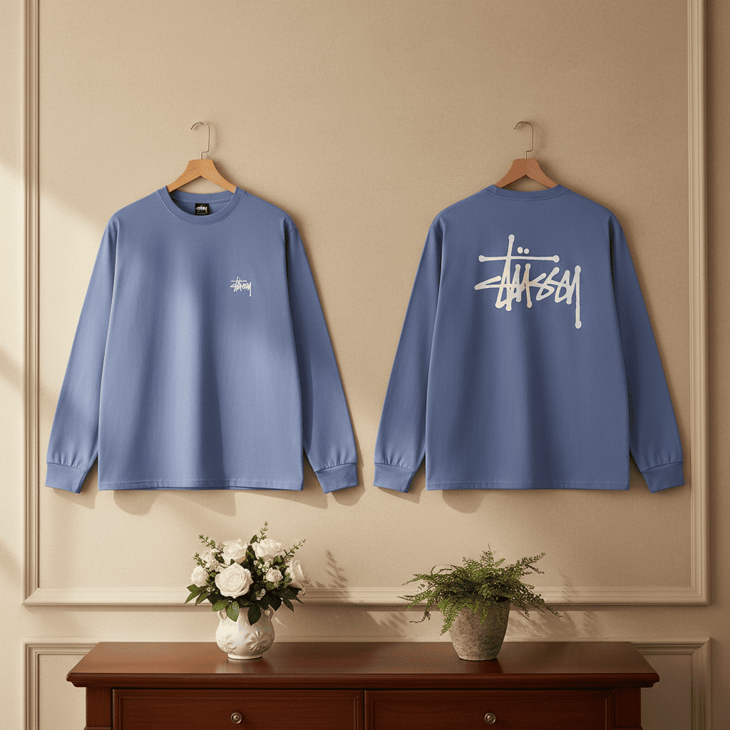 Stussy Logo Print Long Sleeve T-Shirt Beige