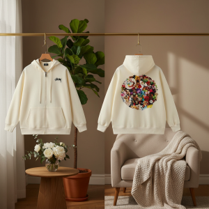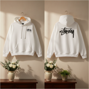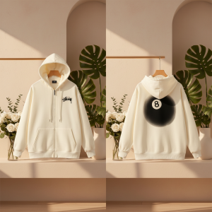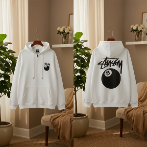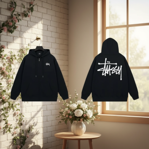 Stussy Black Zip Up Hoodie Men Streetwear Pullover
