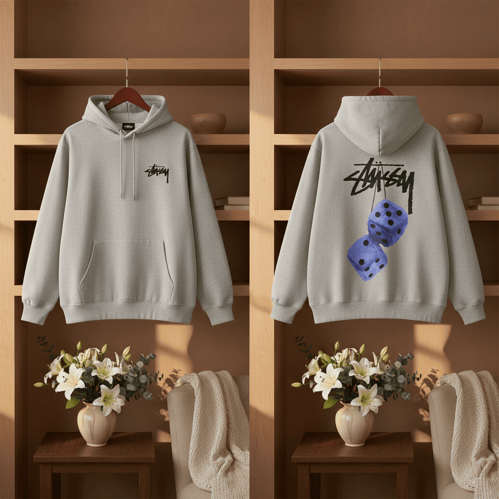 Stussy Logo Print Long Sleeve T-Shirt Beige