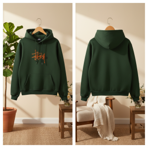 Stussy Pullover Hoodie Men Green Streetwear Sweatshirt
