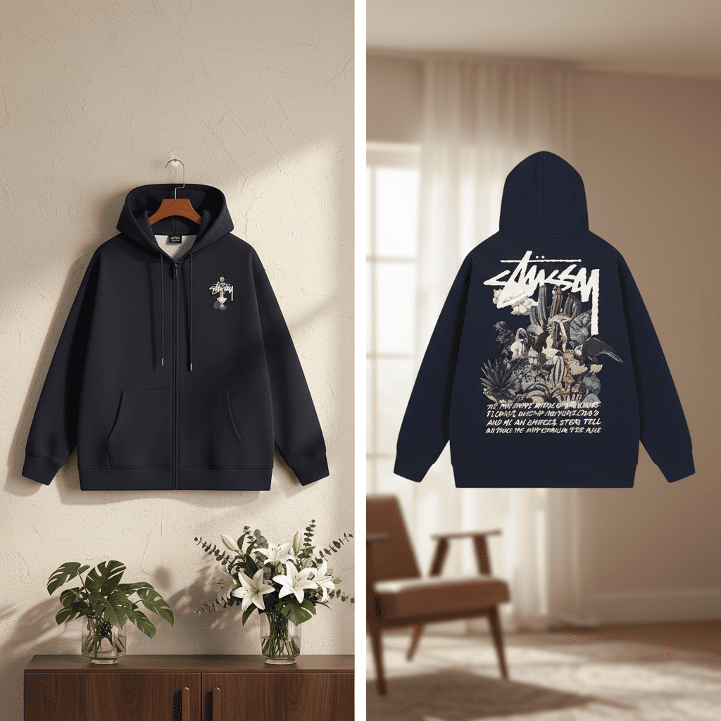 Stussy White Zip Up Hoodie Streetwear Pullover Jacket