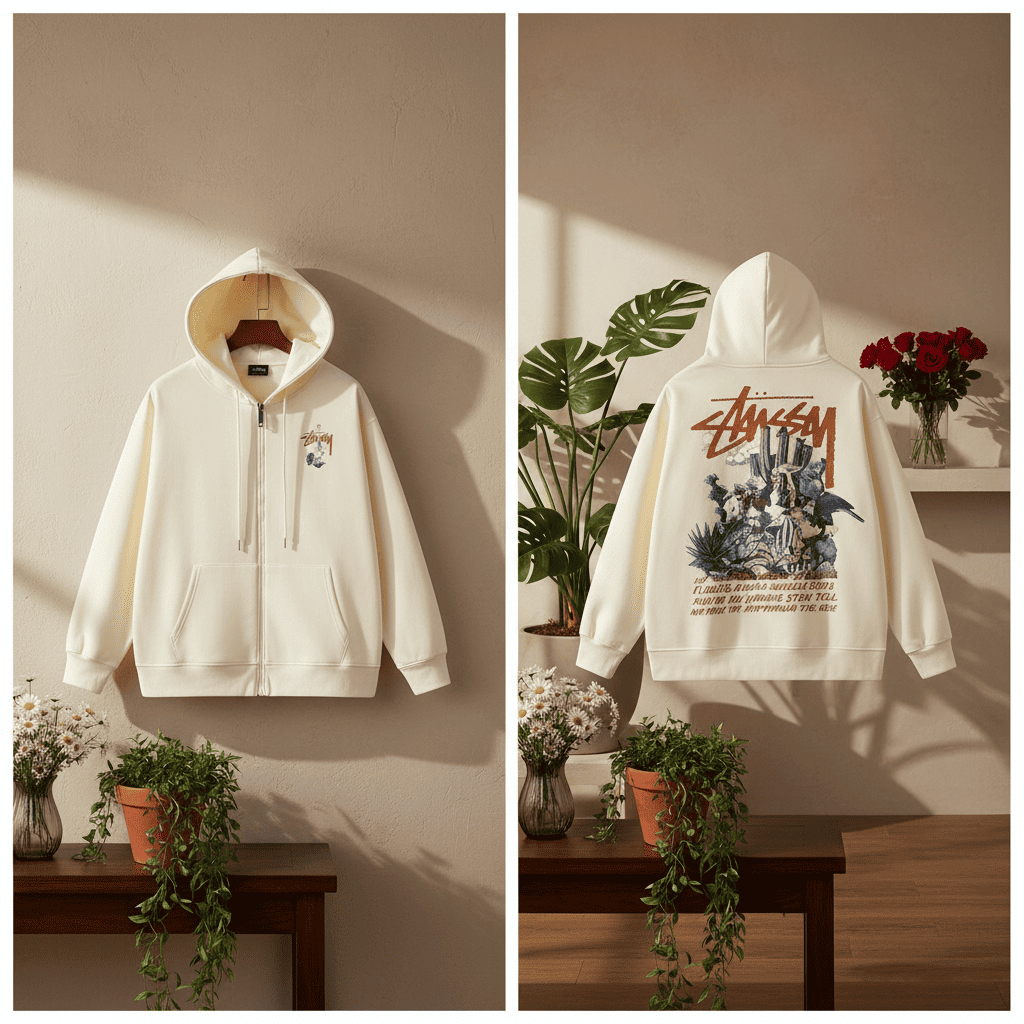 Stussy Black Graphic Zip Up Hoodie for Men