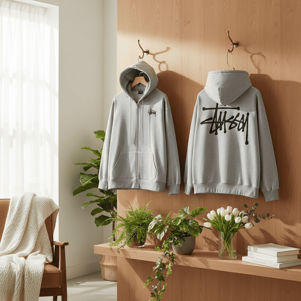 Stussy Classic Logo Beige Pullover Hoodie Unisex