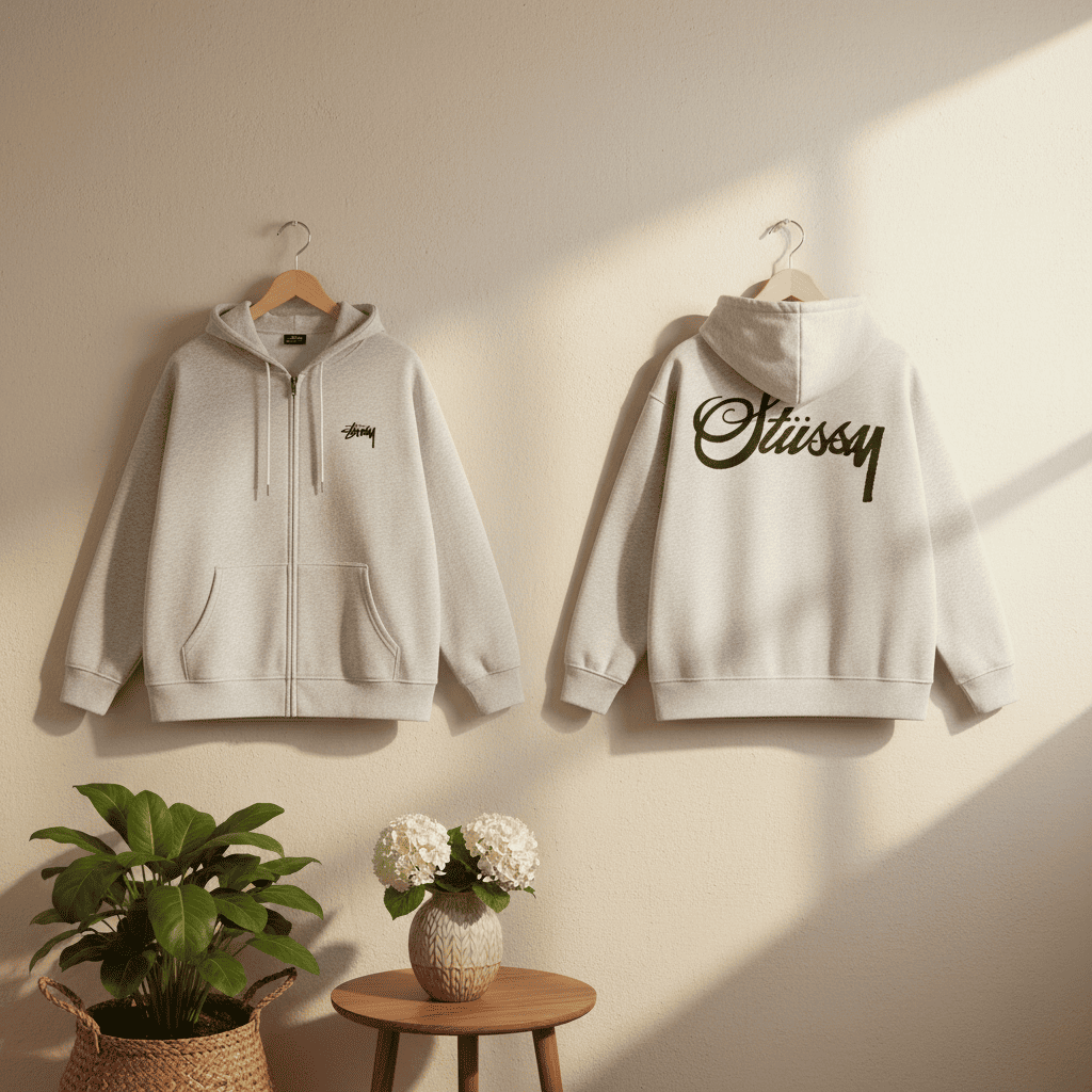 Stussy Classic Logo Zip Up Hoodie Black