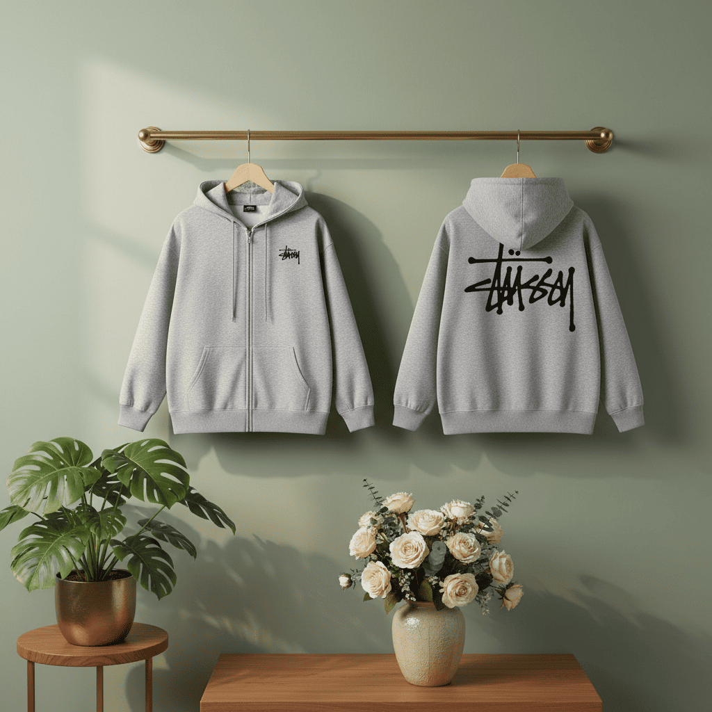 Stussy Gray Zip Up Hoodie Streetwear Pullover