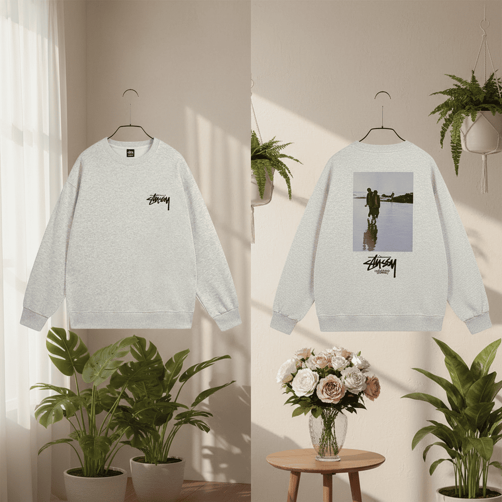 Stussy Grey Graphic Print Crewneck Sweater
