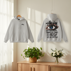 Stussy Eye Graphic Print Gray Hoodie Pullover Sweater