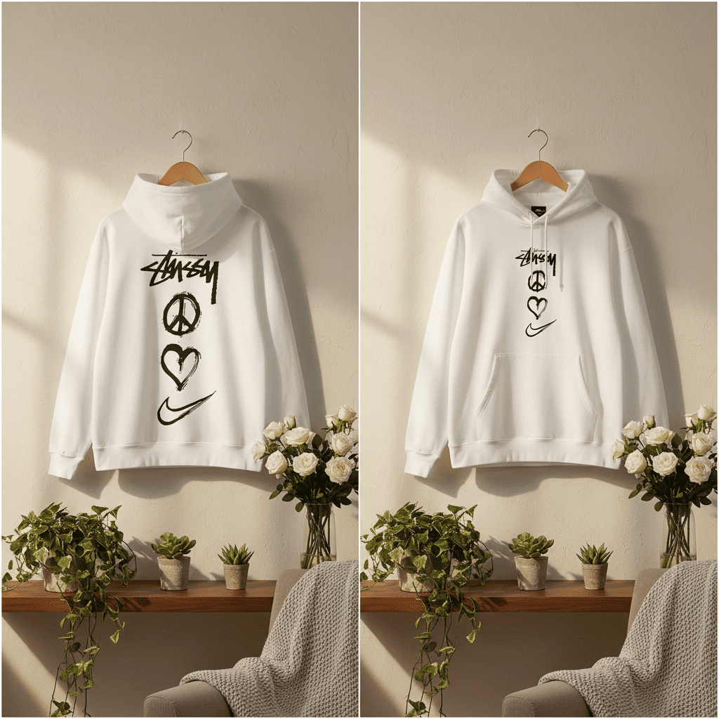 Stussy White Flame Graphic Hoodie Pullover