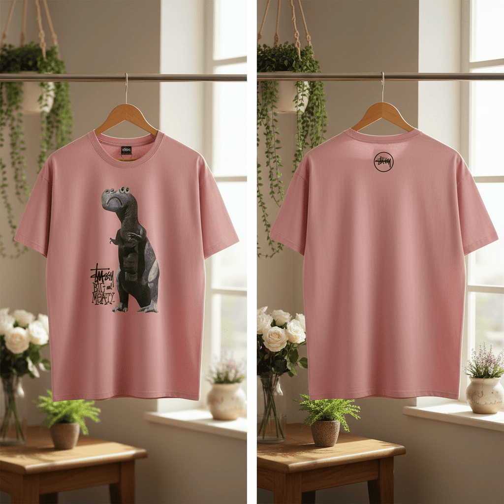 Home / T-Shirts/ Stussy Pink Dinosaur Graphic Casual T-Shirt