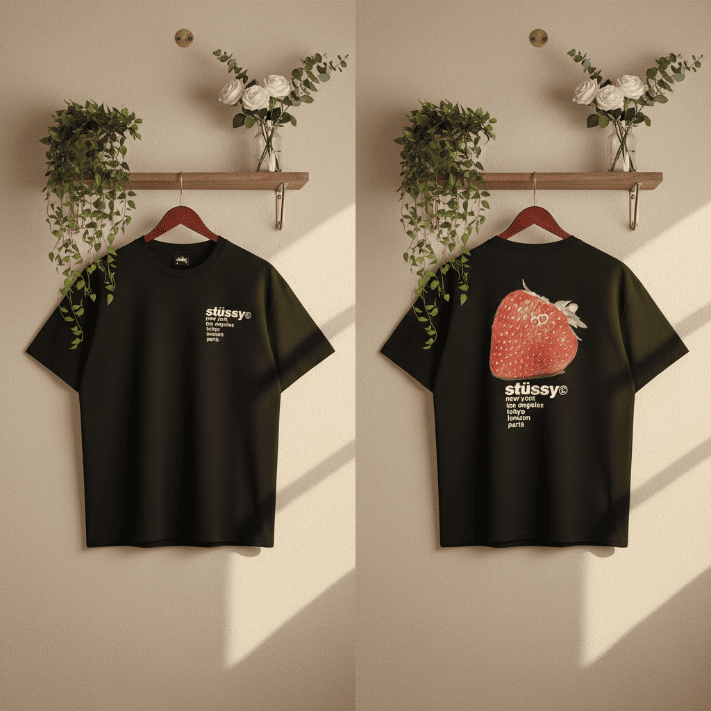 Stussy Graphic Flower Print Black T-Shirt Men Women