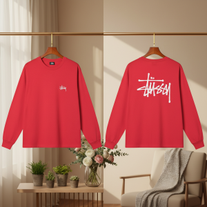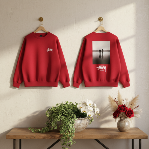 Stussy Red Graphic Print Crewneck Sweatshirt Pullover