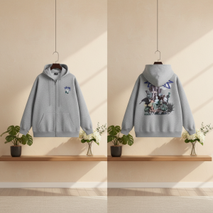 Stussy Gray Graphic Zip Up Hoodie Unisex