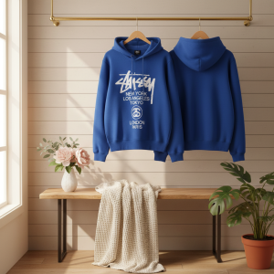 Stussy Vintage Denim Blue Bomber Jacket Men’s Fashion