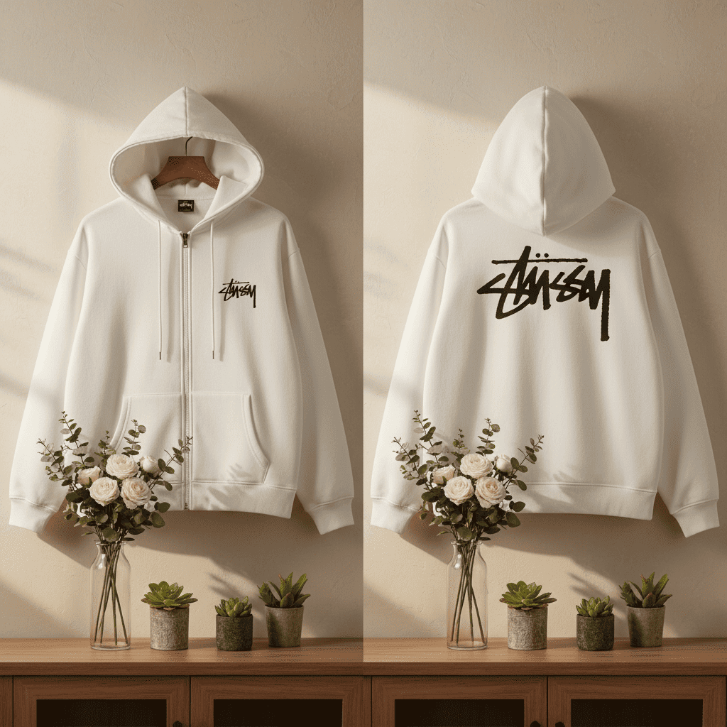 Home / Hoodies/ Stussy White Zip Up Hoodie Streetwear Pullover Jacket